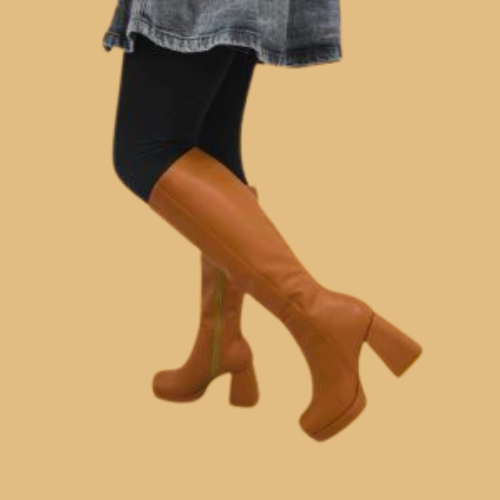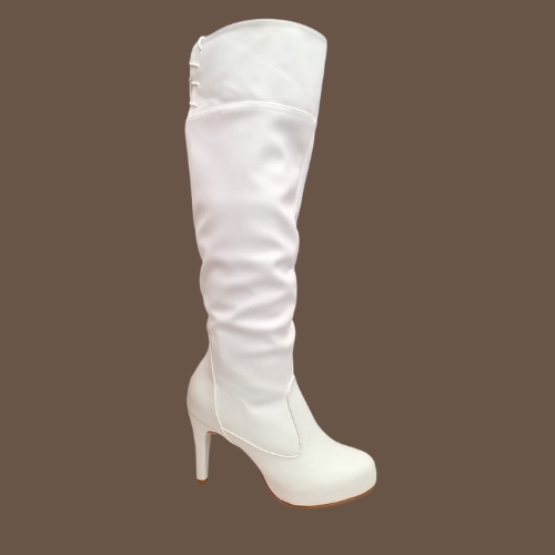 Botas en taco 8 cm grueso en punta cuadra con plataforma en materiales bio-cuero, sueder.
